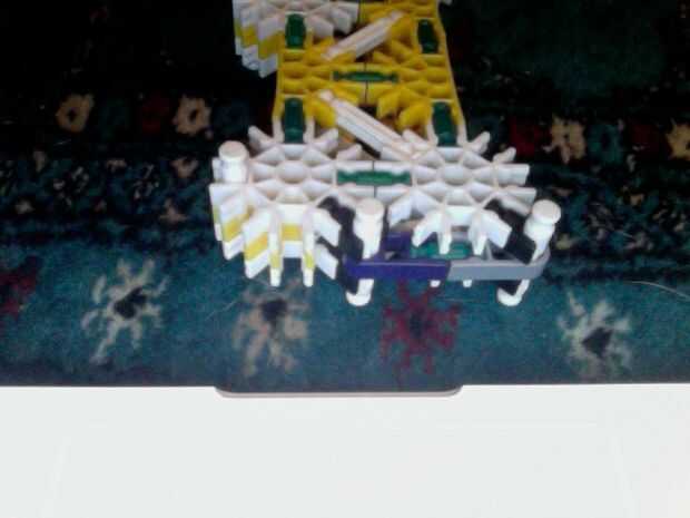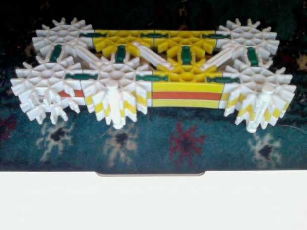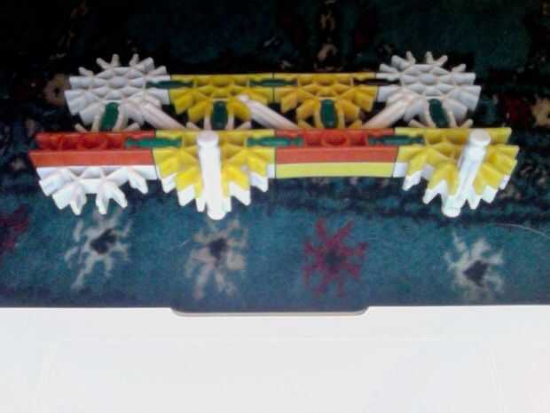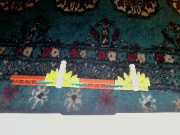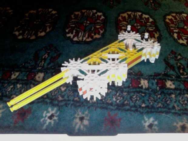 Hola, este es mi K'nex pistola, dispara balas de por lo menos 2 al mismo tiempo y tiene mucho poder. He intentado hacer la pistola más sólido de su forma original mediante el refuerzo de las piezas alrededor del gatillo con conectores escalera naranj