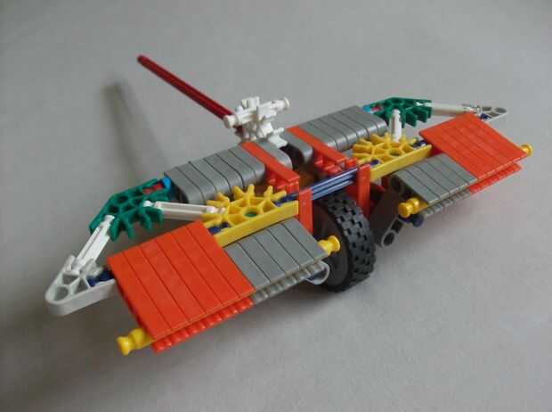 Hi i made this k'nex bulldozer , which has steering and a digging scoop. También tiene unas escaleras ubicadas en la parte trasera del vehículo. El manejo posterior es una gran idea porque ayuda a la topadora manejar mejor que un coche alrededor de l
