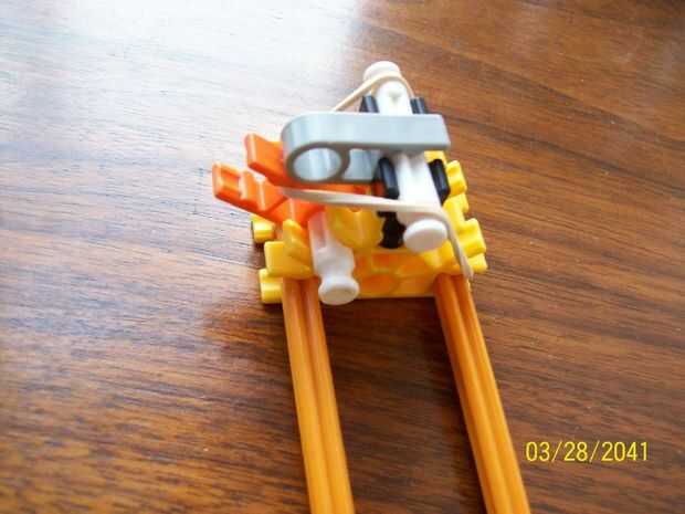 Banda de goma se coloca cuarto mínimo e ir alrededor de la zona de tiro. Está destinado a ser una banda lo suficientemente pequeña como para que el conector naranja se mantendrá pero lo suficientemente grande como para que no causar fricción en la cabeza de cada baqueta lo suficiente como para quebrar el armado.