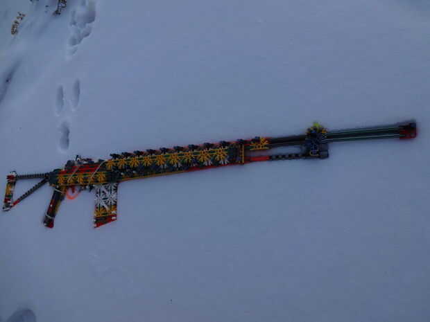 Aunque esta arma no es tan potente ni tan preciso como mi M21, aún conserva su buena apariencia y con una revista de calibre cambiado (fui de disparar una barra azul para disparar un conector de ranura de un gris oscuro con una vara verde) dispara rondas más confiables.