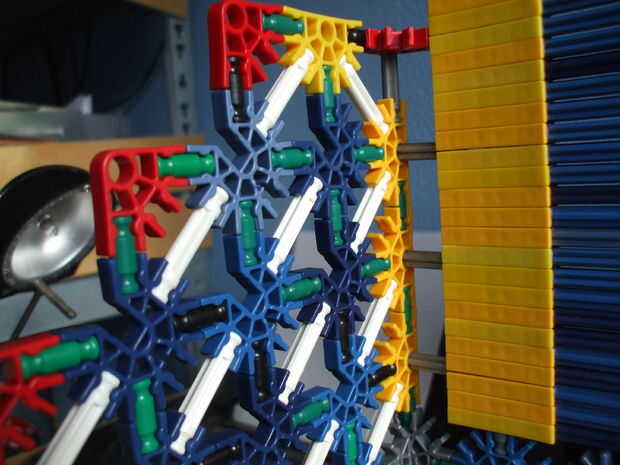 Este es el segundo de una serie de 3 ascensores nuevos en nuestra máquina de la bola de k'nex imposible.Esta elevación es bastante pequeña, lo que es útil para espacios pequeños donde tienes que hacer que la bola suba un poco. Ahora, sé que puedes es