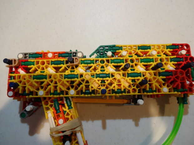 En este tutorial usted aprenderá cómo hacer un arma de Gatling de la banda de goma (también conocido como "minigun") de K'NEX.Las características de arma 8 barriles que cada uno puede sostienen unos 4 gomas para un total de 32 rondas de munición