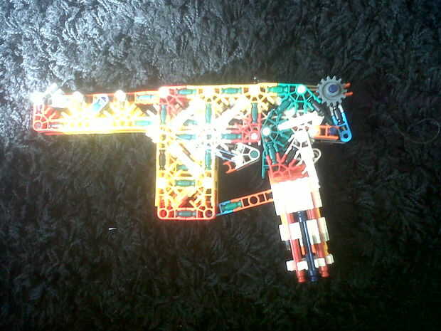 Este es apenas mi 2da K'nex arma de fuego en el sitio. Y sólo mi primera, K'nex Honda/trinquete pistola que he hecho! Con mi propio mech, no es bueno, pero funciona, y si usted fuera a construir esto, realmente recomiendo utilizando una completamente