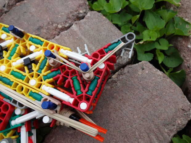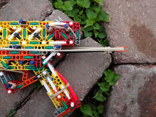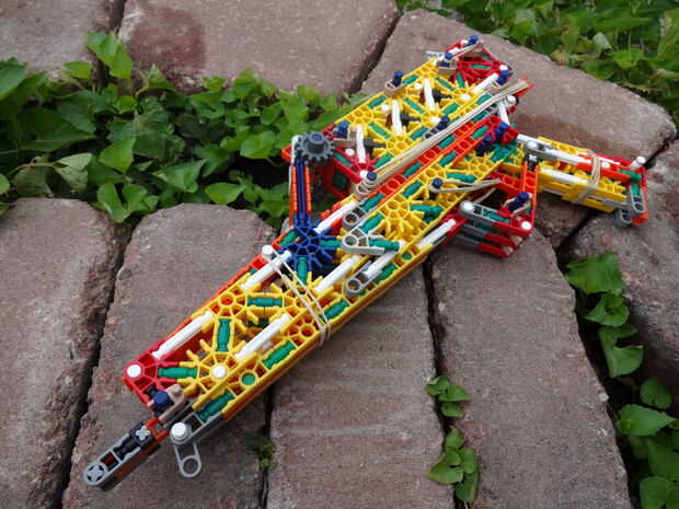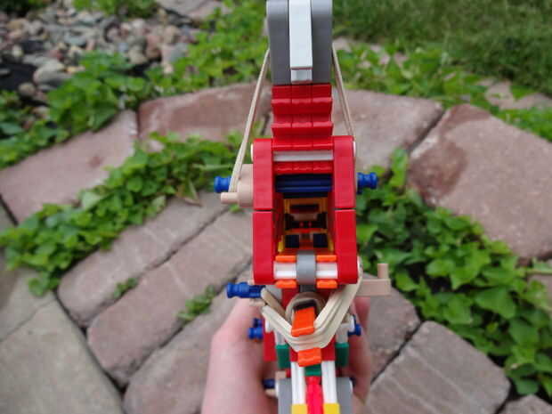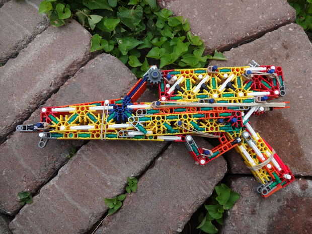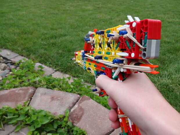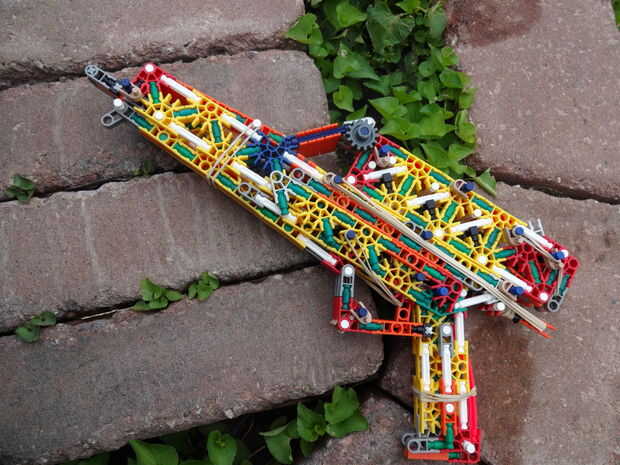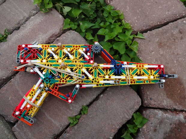 Mi versión también es de 14 pulgadas de largo, usa una tolva (no helicoidal alimentado) y puede llevar 30 rondas (a diferencia de los 50 puede llevar a cabo el original). De todas mis estructuras, éste es probablemente mi favorita. Es exacto hasta 40 pies, si pueden mantener 30 barras blanco que pueden ser cargadas en solo caer las rondas en la tolva (ver pic [s] #8 - #9) y es ligero como una pluma... una pluma pesada que es.