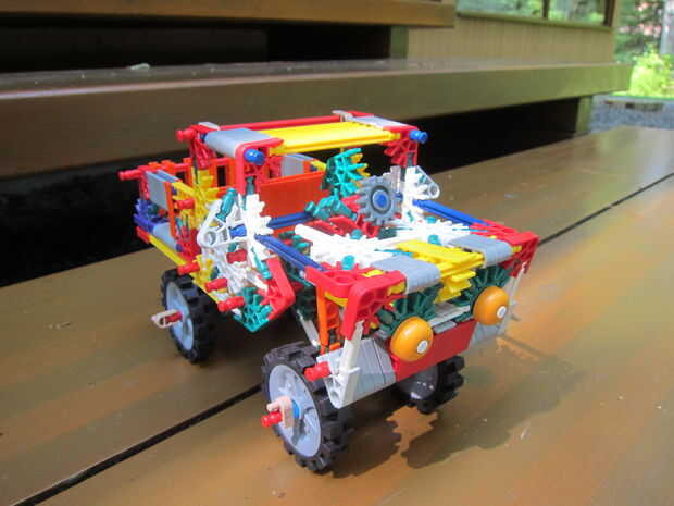 Hola todos, he hecho una camioneta K'NEX, modelada después de un Ford Bronco de los años 60. El camión cuenta con un interior realista motor V8 de bloque pequeño y un volquete operado por una palanca pequeña. Si usted quiere, usted puede construir el arado de la nieve con él. El arado de la nieve es más para las miradas y no es funcional.