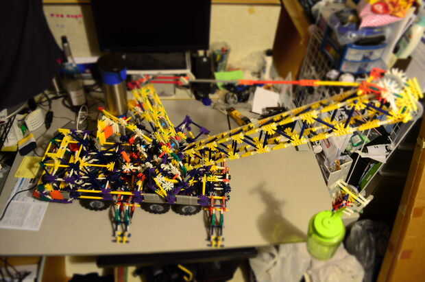 Es tipo de hibridadas entre una grúa móvil y una grúa, ya que utiliza el cuerpo del carro, pero la grúa de correa eslabonada de una. Quizás en la próxima versión voy a intentar hacerlo más carro-como con cualquier técnica hidráulica de K'NEX puedo subir con.