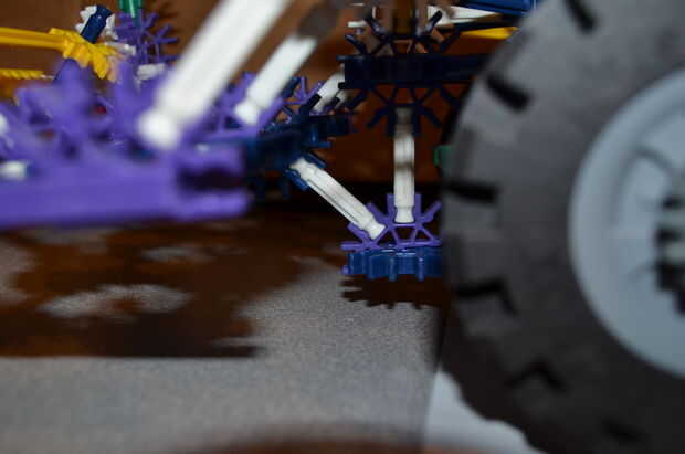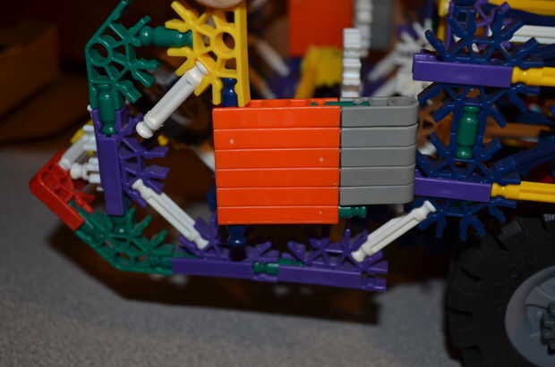 esto es una 4wd K'nex carro con puertas funcionales, un portón, acceso de baterías bajo el capó motor, un volante (dummy), cambio de marchas (dummy), asientos, llanta de repuesto y una cama. El sistema 4wd es rápidamente configurable para la impulsió
