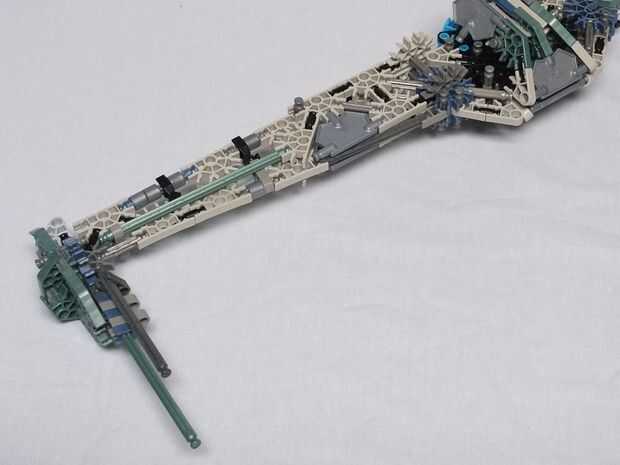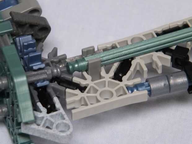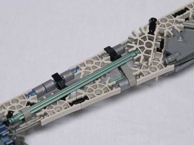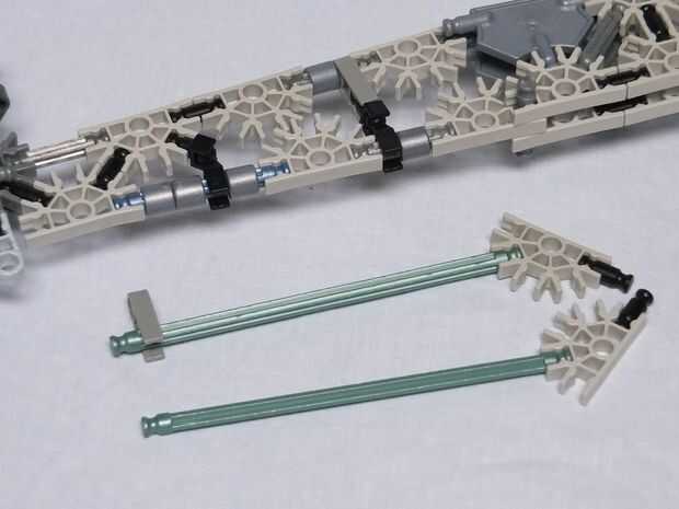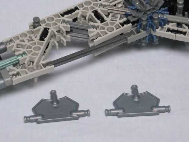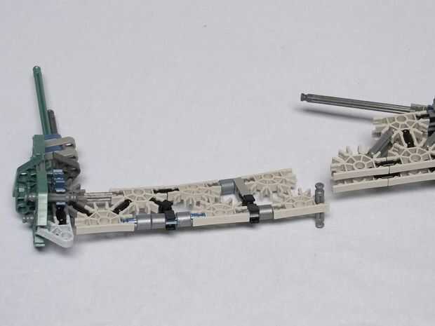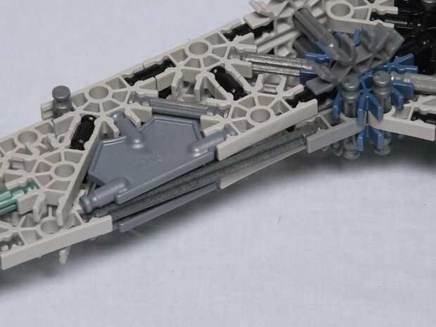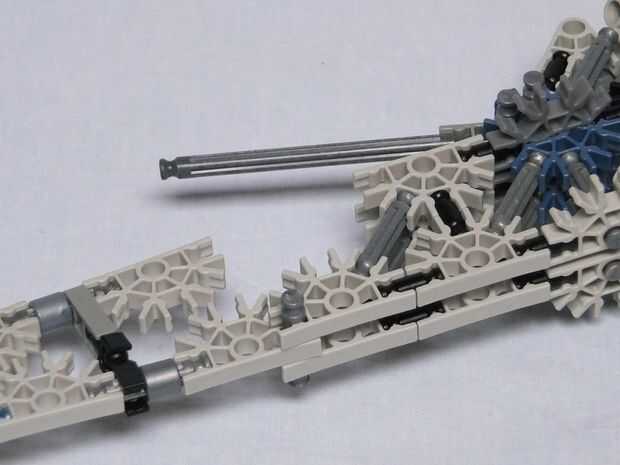 Puede comenzar con el "pie", colocar los cañones y añade la parte más baja del ala a la parte hecha en el último paso. En el siguiente paso será hacer las alerones-s (en ataque posición ;)