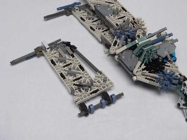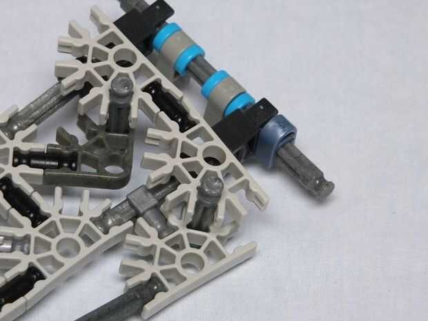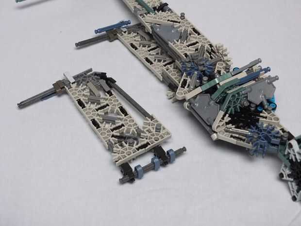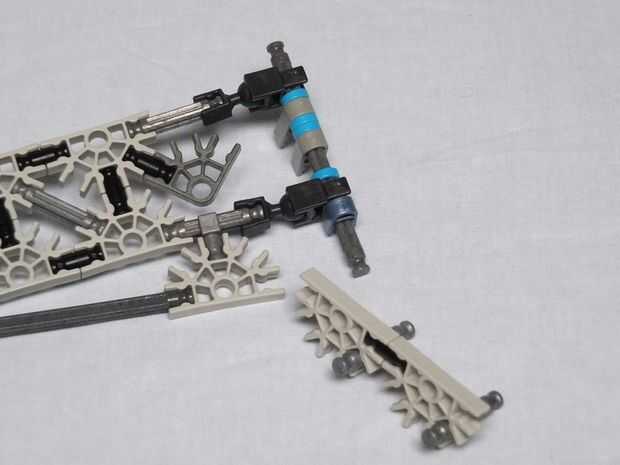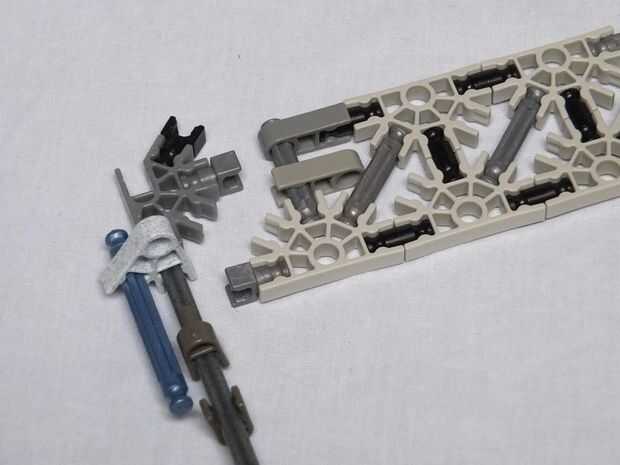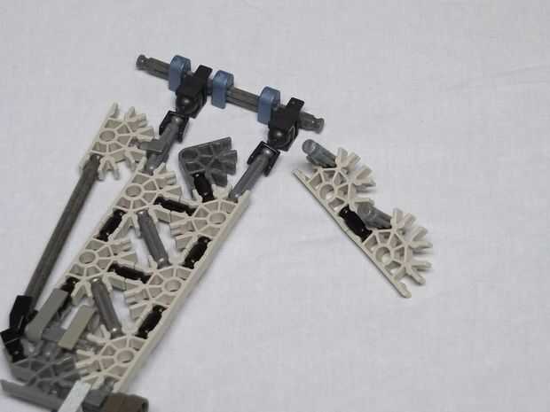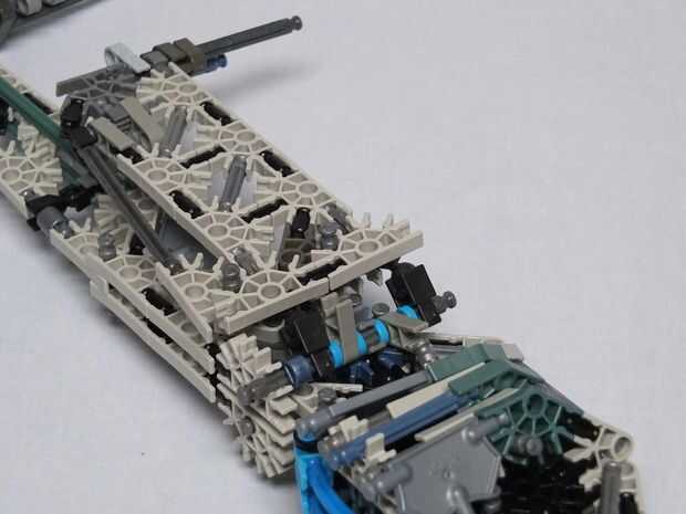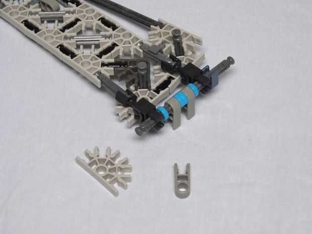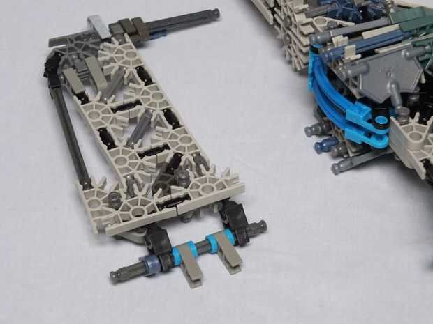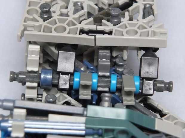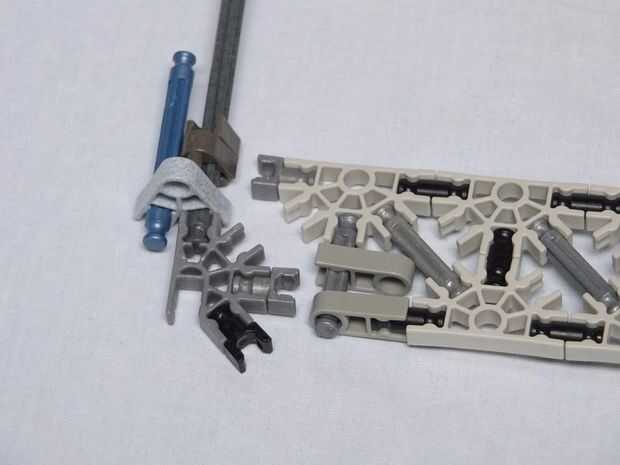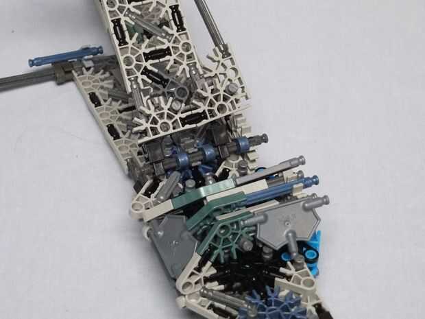 En este paso, primero empiezas con la izquierda hoja (que tiene los accesorios para el soporte de exhibición), que unen al casco de la B-Wing. Después de le toca de la lámina derecha. En el siguiente paso terminar el Ala B sí mismo añadiendo la cabina giratoria.