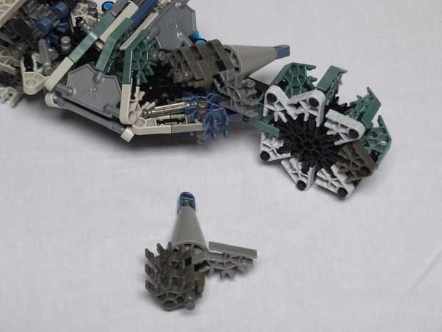 Primero añades las últimas partes del casco, después de lo cual empezar a construir la cabina. Hacerlo y fije así, que tiene cierta libertad para moverse (para que la gravedad lo hará, que se mantiene el nivel). Luego se hace el Ala B!