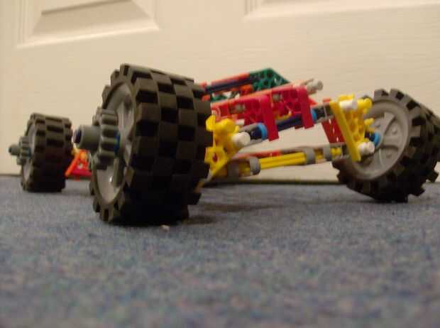 Hola, este es mi coche de sistema gyro k'nex, que es la primera vez en este sitio. El coche entero está hecho enteramente de k'nex. Utiliza un centenar k'nex piezas y ocho ruedas k'nex. Hice este coche con un diseño que vi en un coche de revista y usé el diseño y la forma para crear mi coche. El sistema de giro está hecho de dos mecanismos de dirección prototipo que funcionan como dirección pero fueron dados vuelta para crear el sistema. Un equilibrio de peso ideal así como la orientación buena operar el sistema sin el uso de cualquier banda elástica. Su parte delantera y trasera son las mismas que hace el coche entero simétrica. Un chasis robusto y fuerte debajo coche hace el coche más durable. Cuando no se utiliza sistema de giro del coche, puede adaptarse a la rueda normal comba lo que es más fácil moverse. El coche funcionará mejor que ny de mi k'nex los modelos anteriores en todo terreno o zona llana. El coche es muy ligero y pequeño, pero funciona mucho mejor que cualquier otro coche de su tamaño. El coche es de 28cm de largo y 21cm de ancho pero la altura es muy baja por un total de 7,5cm que es el coche más bajo del k'nex con un mecanismo en las ruedas. Gracias por ver este edificio instructable y feliz!