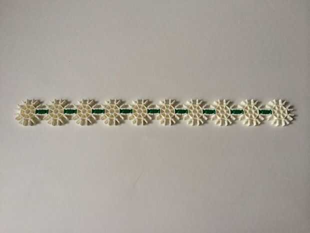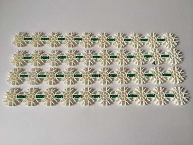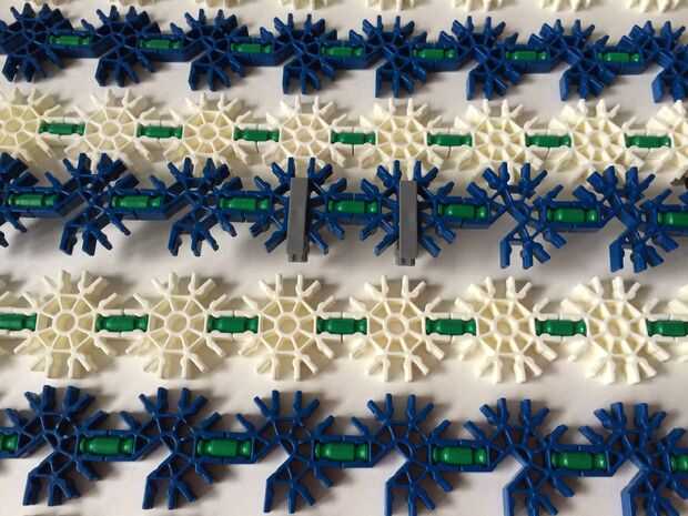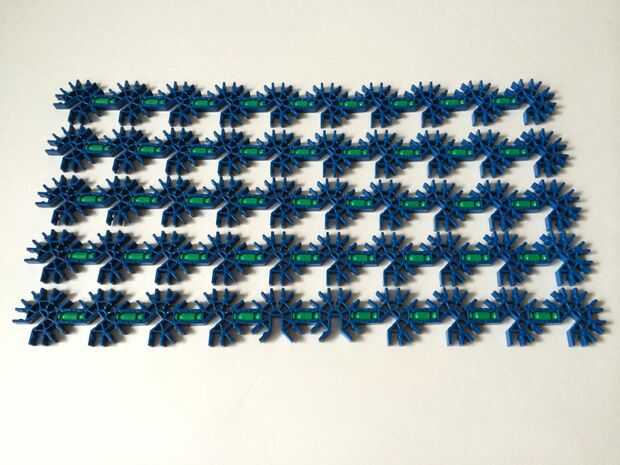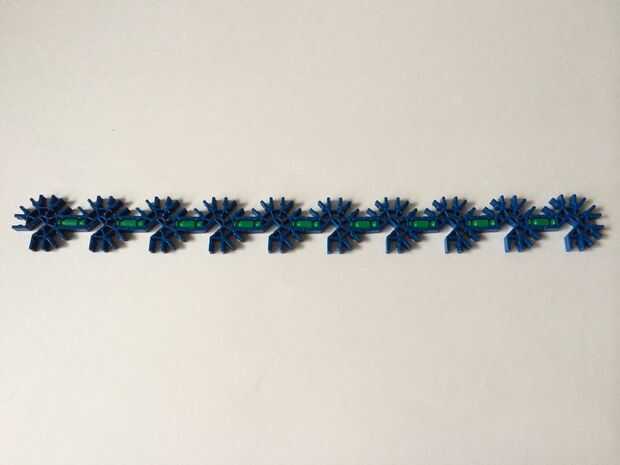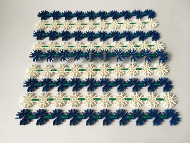 Tomar diez conectores blanco y conectar usando barras verdes. Repita el procedimiento para obtener cuatro filas.