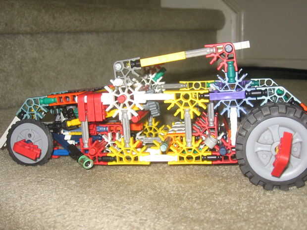 un simple pero gran KVG off road Hot RodPaso 1: materiales se necesita:dos grandes ruedas grisdos ruedas recauchutadasdos pequeñas ruedas negroseis espaciadores plano azules4 conectores amarillo4 conectores rojo4 barras azulPaso 2: chasis seguir los