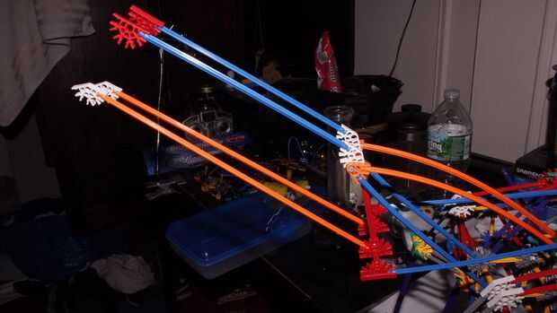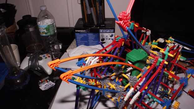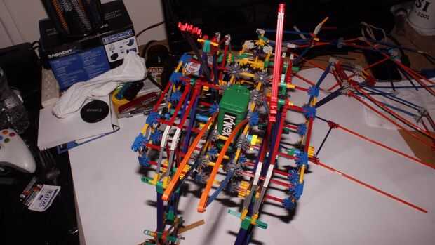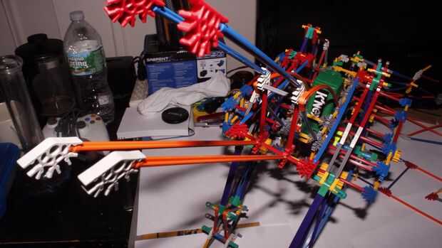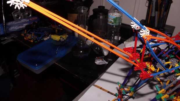 Esta característica puede utilizarse para crear curvas. Observe las curvas en el cuello. Usted puede doblar el K-nex bastante lejos antes de los saltos de conexión. Una vuelta es que los conectores tienden a romperse si tensionado demasiado lejos.