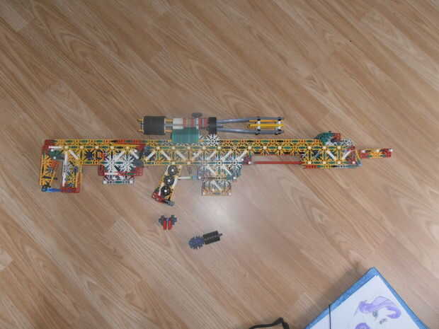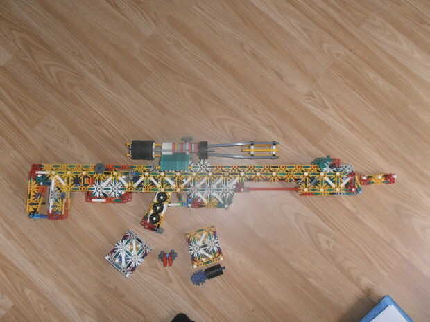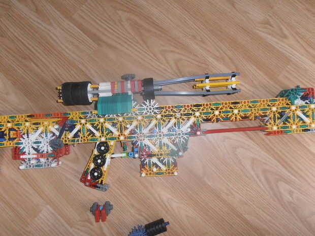 Recientemente vi una réplica de la k'nex del rifle de francotirador DSR-50. Me gusta cómo se ve la versión real, la réplica no es tanta (sin ofensa al creador del mismo). Así que ayer que decidí hacer uno yo mismo, que he terminado hoy.