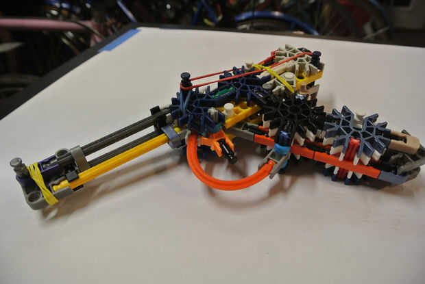 esto es una ametralladora de k'nex. Se dispara bastante lejos y es divertido de usar. Tiene una tasa firering 6,7 o 8 vueltas por segundo. Construirlo y probarlo, es una muy divertida pistola. Por cierto, yo no soy responsable de lo que se hacer con