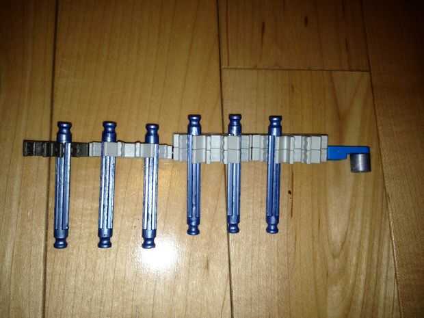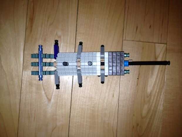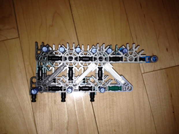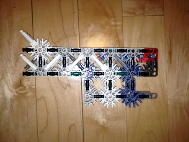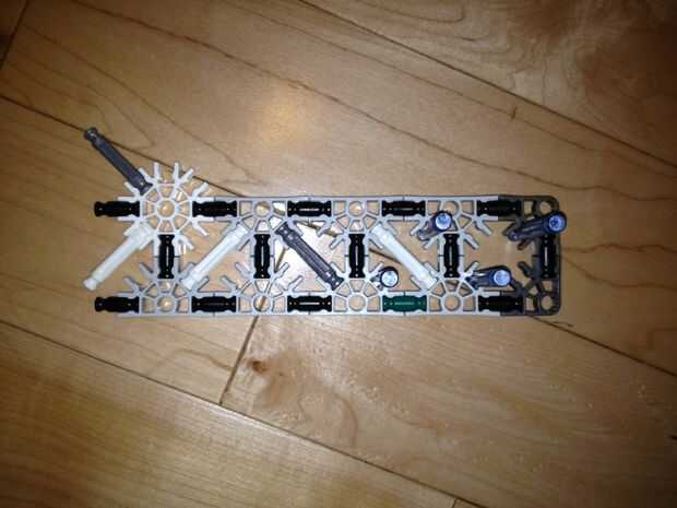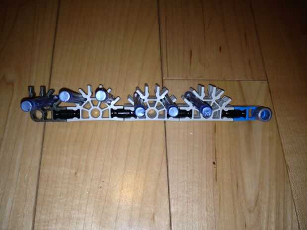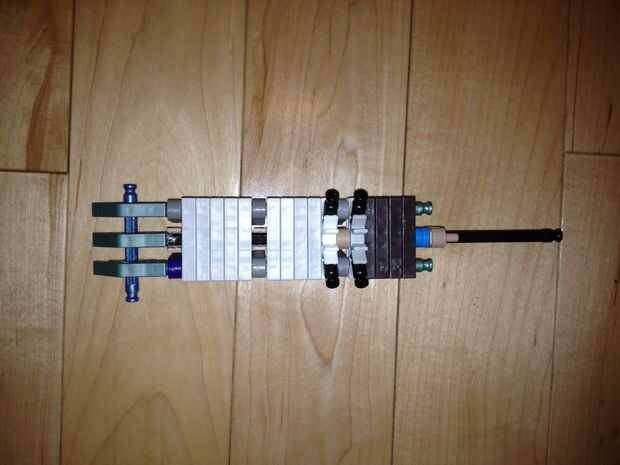35. Añadir el martillo, una de las piezas del paso 32 y la pieza del paso 30 (con esta pieza, aunque no sin espaciadores, asegúrese de que es ancho de una barra de la placa exterior).