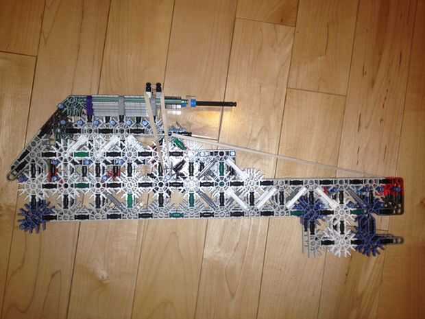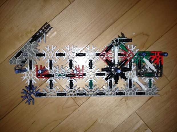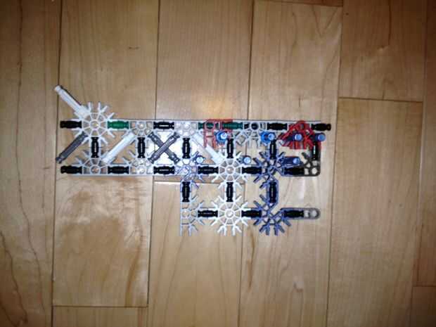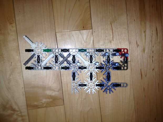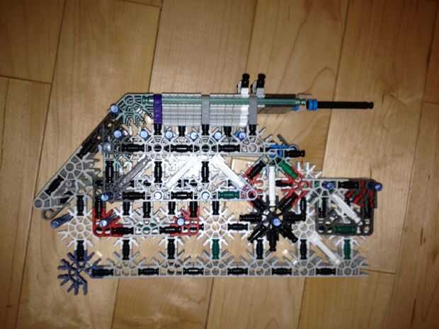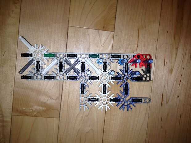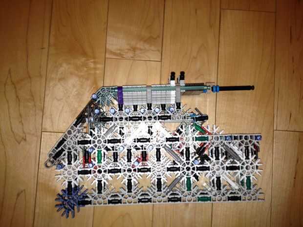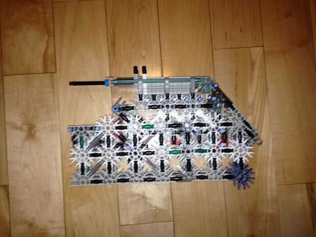 36. Conecte el montaje de la torreta superior al Monte torrecilla baja y adjuntarlos al resto del cuerpo como tal. Al hacerlo, usted experimentará algunas "malas K'nex geometría" entre el conector rojo y el Monte de la torreta. Esto está bien, pero si alguien puede llegar a una solución, por favor hágamelo saber!