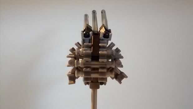 Este modelo es más o menos en una escala de 1:10 . El robot utiliza 35 piezas, y el soporte utiliza 24 piezas. No hay piezas rotas/modificado sin embargo algunas piezas están ligeramente dobladas, pero no lo suficiente para hacer cualquier daño sensible a ellos. El robot puede girar verticalmente, y cada antena es individual capaz de pose.