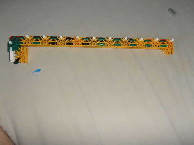 Hi i made this k'nex bulldozer , which has steering and a digging scoop. También tiene unas escaleras ubicadas en la parte trasera del vehículo. El manejo posterior es una gran idea porque ayuda a la topadora manejar mejor que un coche alrededor de l