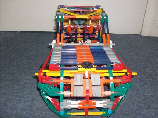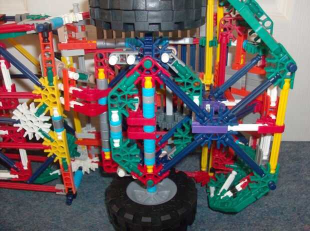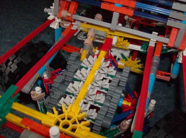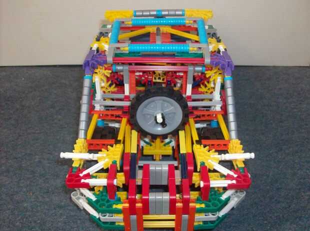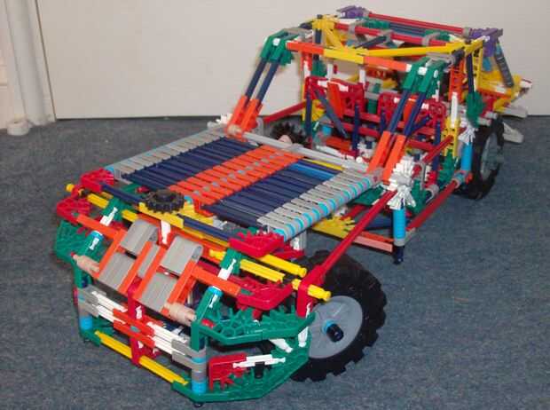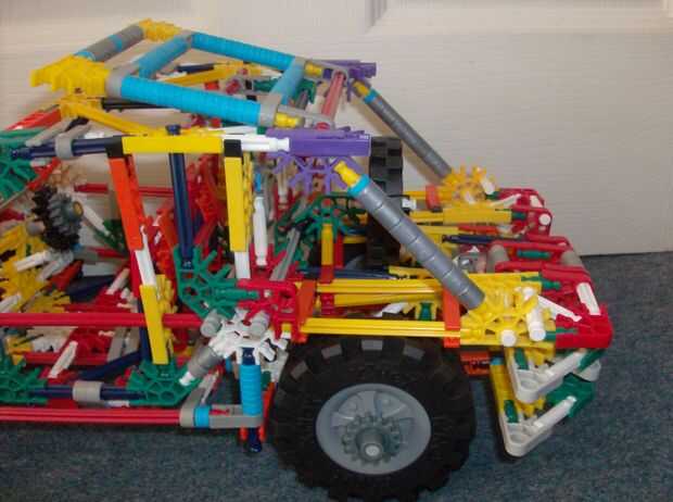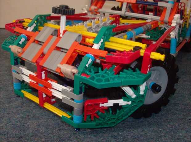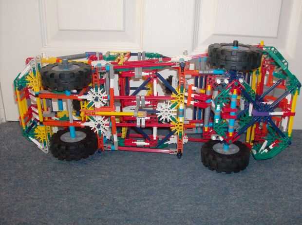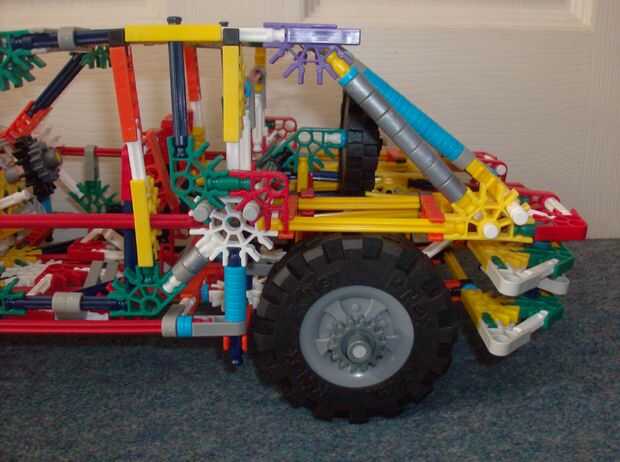 Este K'nex llevó 10 horas aproximadamente y alrededor de 1300 piezas de construir el coche 8 ruedas K'nex. No hay motor en el coche pero hay potencial para utilizar una de las ruedas traseras. La estructura sólida en todo el coche hace el coche robusto y fuerte cuando se mueve. Hay una jaula del rodillo en la cabina del coche y en la parte posterior cerca de la rueda de repuesto. Empecé la compra de coche del chasis del edificio e hice la estructura alrededor de la carrocería para montar sobre él. Empecé a hacer piezas adicionales como el motor, parachoques, capó y tronco por lo que pude construir la carrocería alrededor de esto, haciendo el coche mucho mejor.
