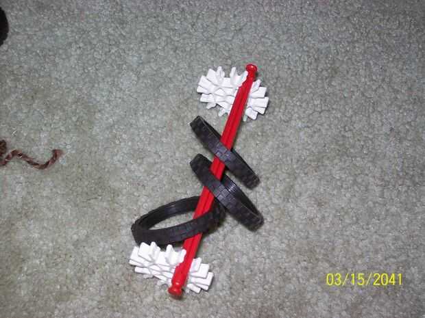 me encanta esta cosa alrededor de los bancos, es adictivo. XPDe todas formas, bastante simple, puede incluso se han hecho antes.También, cosas pueden ser muy pronto:-K'nex pistola con munición que va en el mango-Cuchillo de muñeca K'nex (no muy ocult