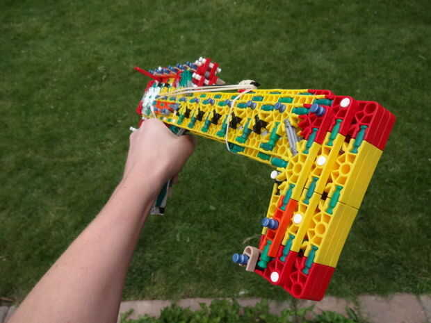 La más nueva tecnología en accionamiento de percutor está aquí, eliminando la necesidad de tirar el pin manualmente. Traído a usted por la firma de EPU K'NEX pistola, la pistola prototipo ascensión es nuestro K'NEX más útil hasta la fecha. Con su patentado sistema de pin-pull, este nuevo mech tiene el potencial para reemplazar la necesidad de tirar de la aguja con los dedos. ¿Que es no parece?