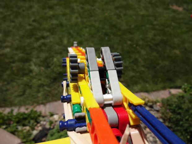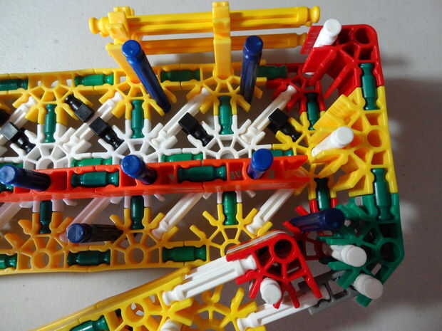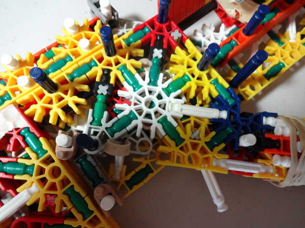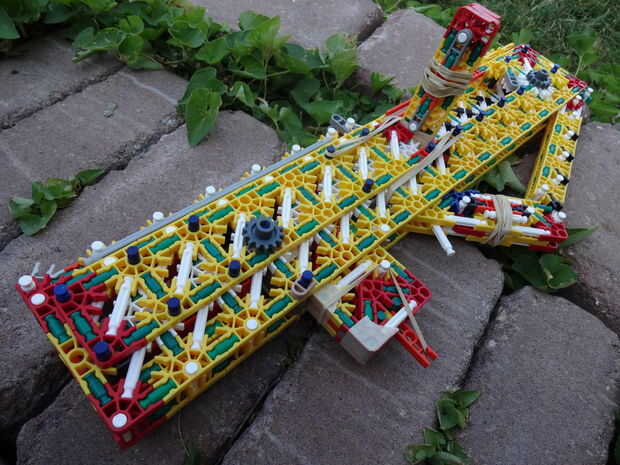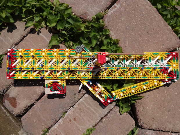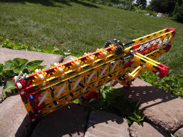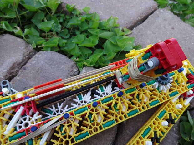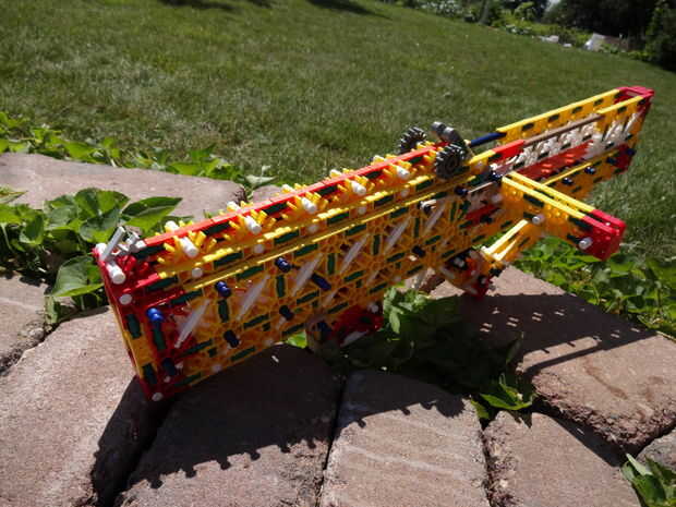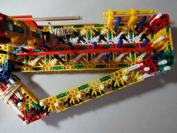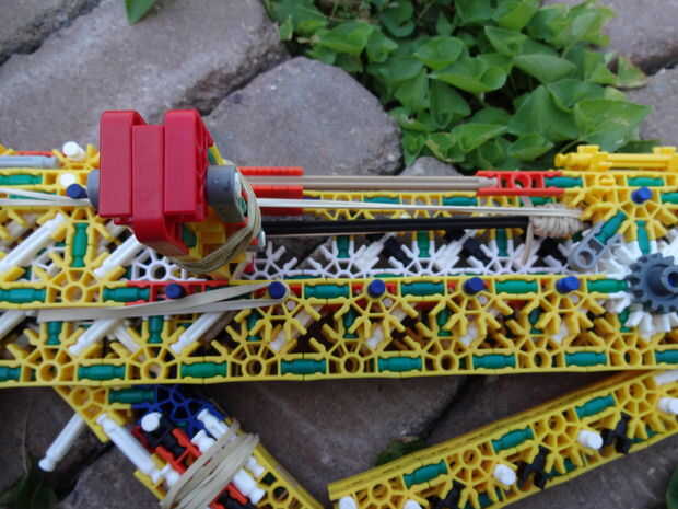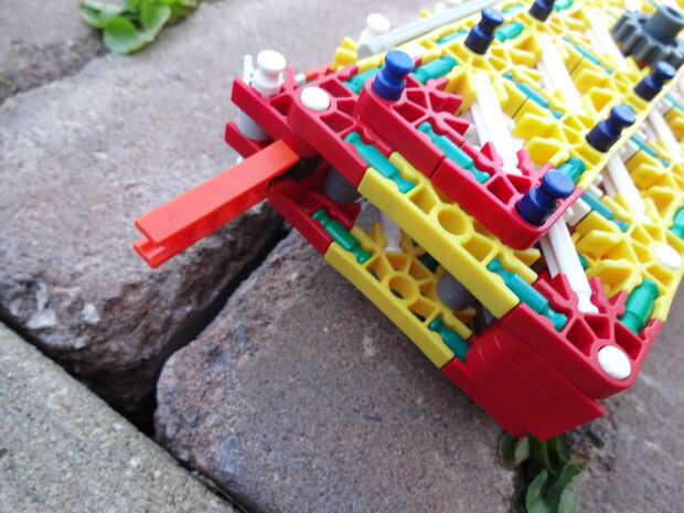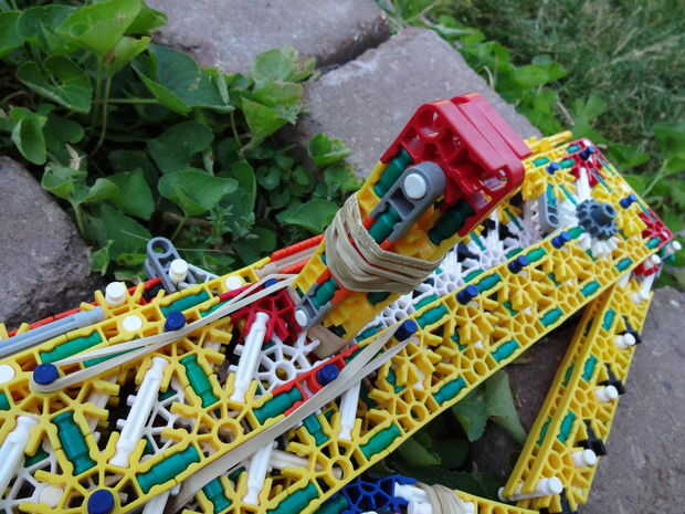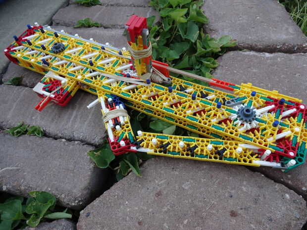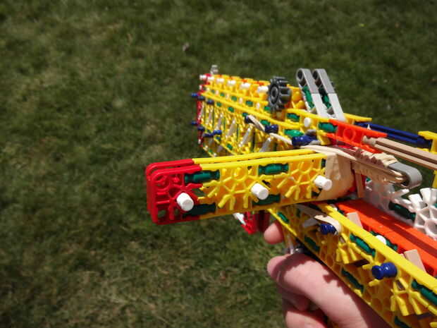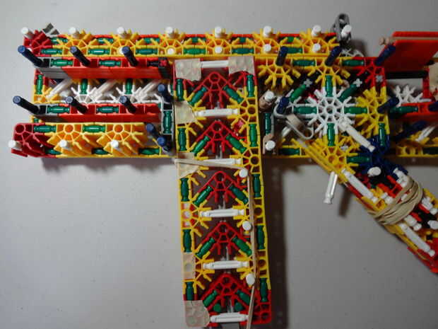 Con todo eso dicho, les presento a mi arma K'NEX: tasa de fuego. Un poco me recuerda a una mezcla de S1 una Magpul PDR y de Sharir1701. Tiene una tasa de fuego que puede vaciar un mag (7 balas) en menos de 3 segundos. No he hecho una prueba de gama completa todavía, pero probablemente obtiene menos de 40 pies, si no 60-70 pies. Esto es técnicamente un segundo intento de mi "La bañera".