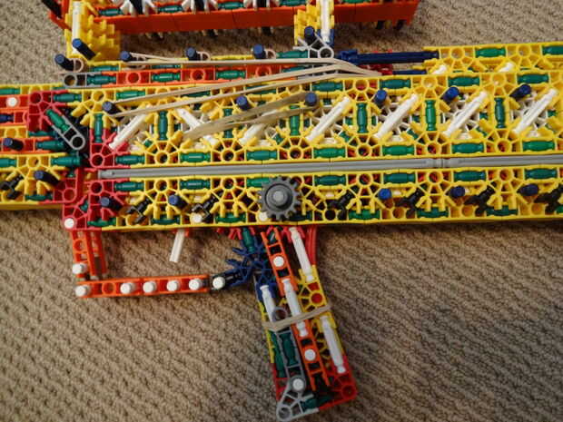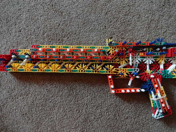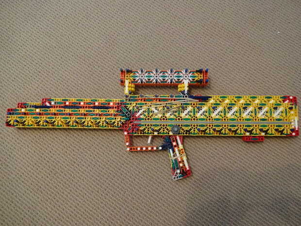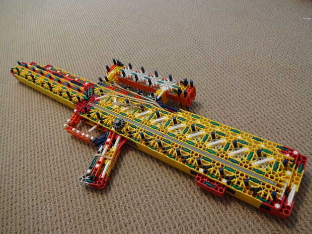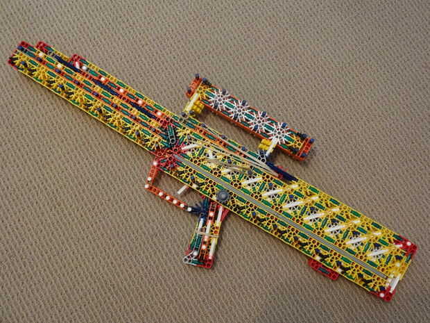 La original es de 29 pulg de largo, dispara munición de shell-less (como ya se indicó) y tiene una revista de alta capacidad que se coloca en el frente de la pistola (ver foto #17). Mi versión es también 29 pulg (ish) de largo, dispara balas de un compartimiento tubular que se coloca en el mismo lugar la revista habría sido colocados y es muy robusta y limpia. Si desea más información sobre el original, mira aquí.