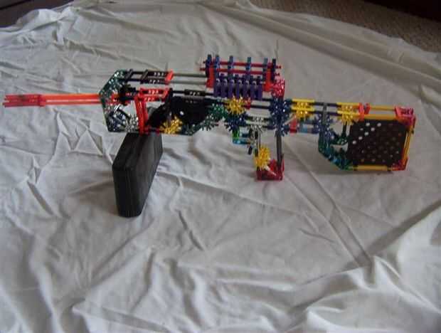 Este es un modelo K'NEX (sólo un modelo, no un arma de fuego) de la M7 Caseless metralleta de Halo, mejor conocido como el SMG. Tiene doble muesca vistas, parte trasera y delantera stock y un cañón sólido. Se extiende la acción, lo hizo, pero estoy pensando en lo que es plegable. Debe ser bastante fácil de poner en un mecanismo de disparo, pero no planeo hacerlo ahora mismo. Creo que voy a publicar las instrucciones porque tengo que tomar aparte. Si alguien puede disecar en su mente, seguir adelante y hacer un Instructable, pero hacen una colaboración conmigo.