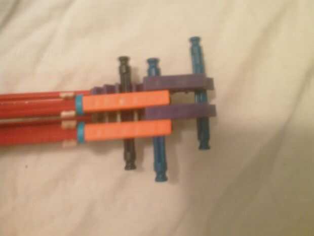 hice este gunwhen estaba fildin alrededor con la garrapata (hice 2) asique ir uPaso 1: paso 1: partesbarras deverde: 3blanco: 5amarillo: 1conectoresgris oscuro:lt gris 1 (roto)rojo: 1blanco: 2socket de bola: 1y clips: 6naranja: 1otrosgoma bands4-5mun