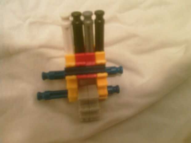 Knexfan no cucarachas sobre esto así que les dejo esto como una presentación de diapositivas (es broma...). Todo esto es copiado directamente desde esta página.Metralletas Caseless M7 dualHice otra SMG y un Rifle de batalla! Las metralletas son casi