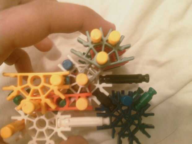 hice este gunwhen estaba fildin alrededor con la garrapata (hice 2) asique ir uPaso 1: paso 1: partesbarras deverde: 3blanco: 5amarillo: 1conectoresgris oscuro:lt gris 1 (roto)rojo: 1blanco: 2socket de bola: 1y clips: 6naranja: 1otrosgoma bands4-5mun