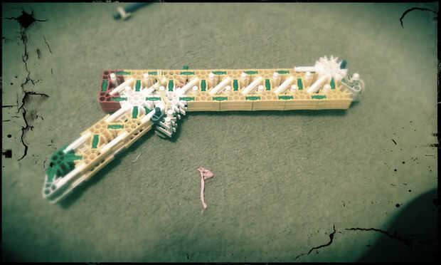 HolaEstas son las instrucciones para la pistola / iPod caso que publiqué hace un tiempo.Esta arma utiliza un medio para algo gran cantidad de piezas, dependiendo de su colección de K'nex. Utiliza algunas varillas rotas, otros trozos que ves en las in