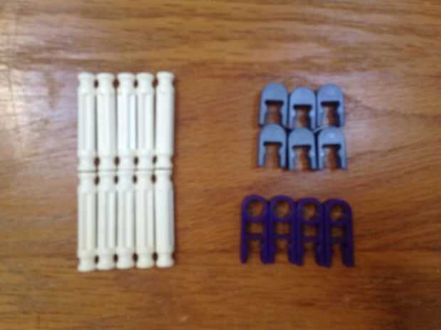 Recoger las piezas en la primera imagen, los clips azul pueden intercambiarse con los conectores de color púrpura y el violeta con el azul, sólo asegúrese de tener 10 clips. También coge a 4 espaciadores azul. Conecte las varillas blanco como ves en la imagen que pongo notas sobre ellos para que sean fáciles de encontrar. Colocar las pegatinas y parches en y cerca de los conectores. Puse la etiqueta media en al revés así que usted puede leer. A continuación añadir los clips como se muestra. Por último añadir las barras del blanco finales donde se muestra con conectores azules o púrpuras sobre ellas. Voltee la unidad y poner a separadores azul cuando sea necesario. Por último, conecte el soporte donde se muestra. Ahora tienes una pantalla para sus etiquetas engomadas de instructables y parche!