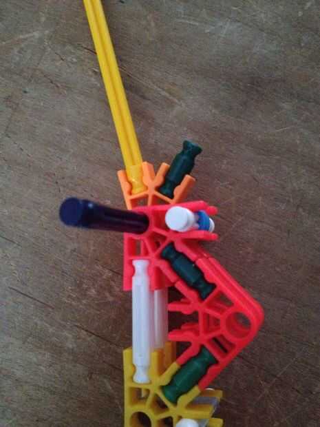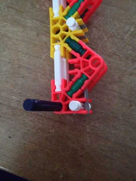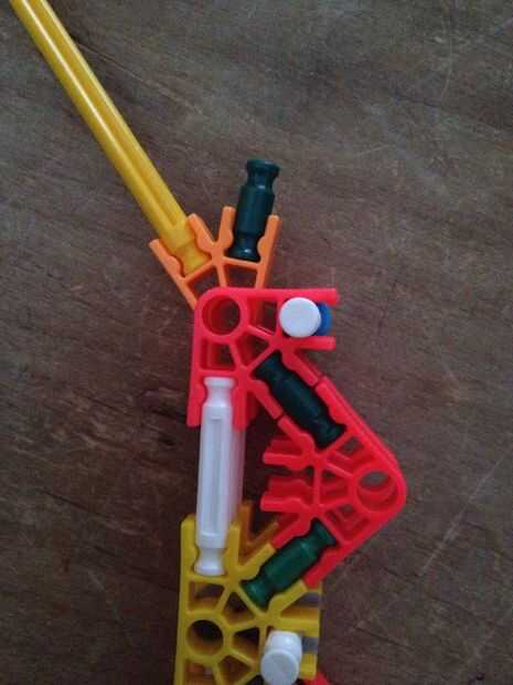 Que el agujero en el conector naranja en la hoja entre los top 2 conectores rojos en el cuerpo con la pieza verde más cerca los 2 separadores azul en el cuerpo como en la foto.