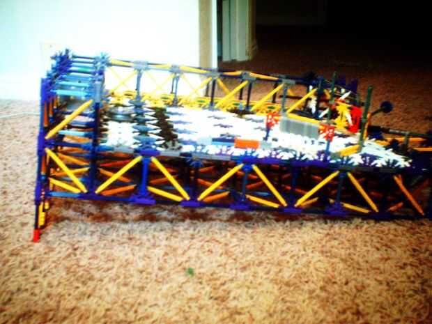 sí, una máquina de pinball de k'nex y tiene trabajo aletas, lanzador de bolas, terreno fácilmente personalizable y raramente frenos.También doy crédito a alguien para el diseño de aleta... Dsman195276 derechaPor favor hacer las aletas en:Paso 1: El m
