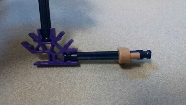 Ajustar barra azul con beige clip conector morado enfrente de la ranura abierta grande