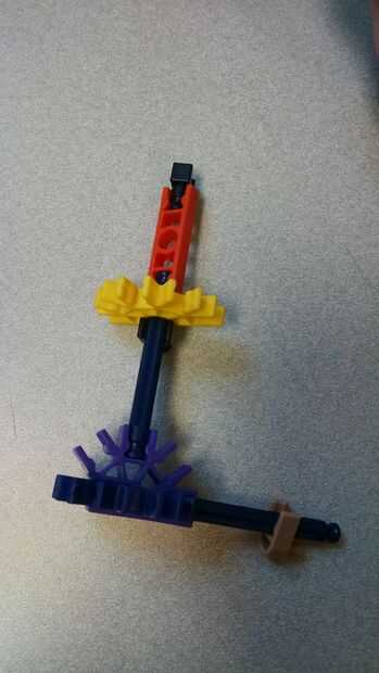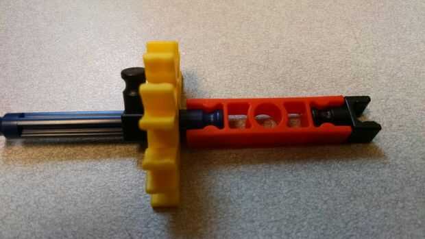 Deslice el conector amarillo de abajo de la barra azul a través del agujero en el centro del conector amarillo de