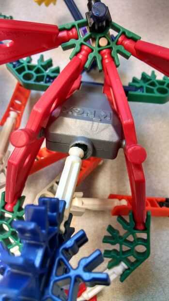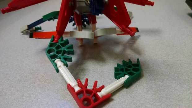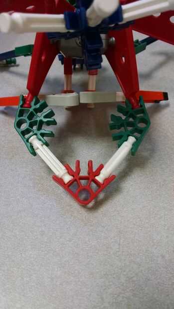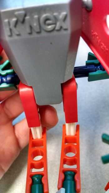 Deslice los dos conectores rojo de las piernas sobre las articulaciones de bola inferior de cuerpo gris para garantizar las piernas en su lugar. Apretar lo más posible deslizando los conectores rojo hacia unos a otros para reducir el deslizamiento o caída de piezas