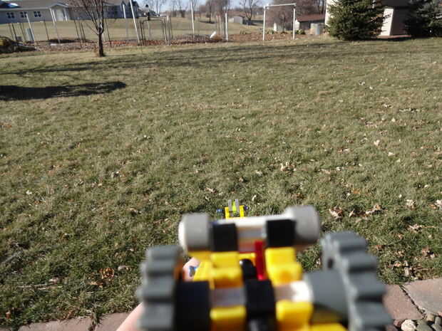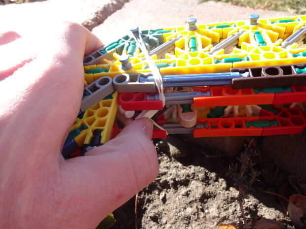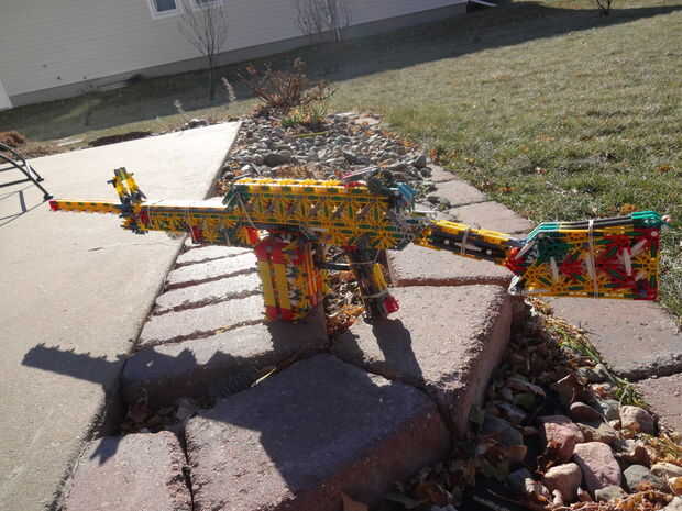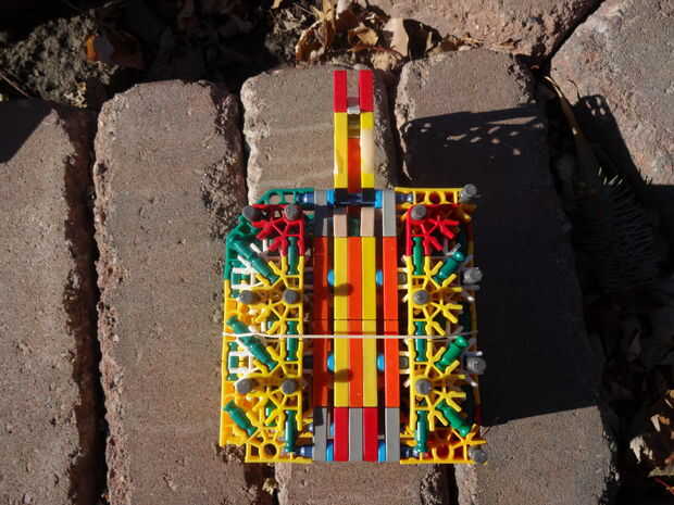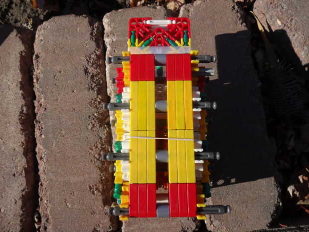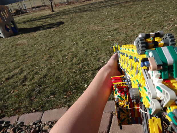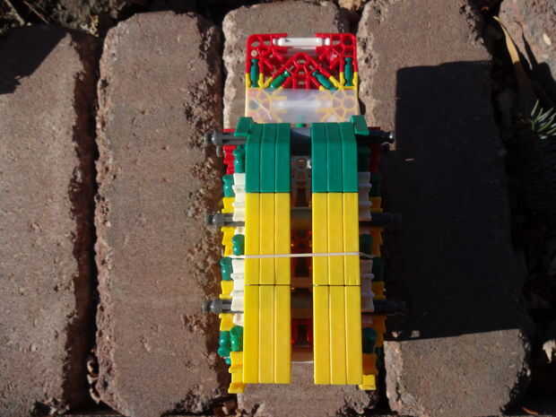 Decidió tomar un descanso de K'nex armas un poco y construyó a esta fella. Es mi primer vehículo de K'nex, así que tenlo en cuenta. : P tiene trabajo de dirección que hice por mí mismo; tiene dos palancas que empujar/tirar para el eje delantero. No e