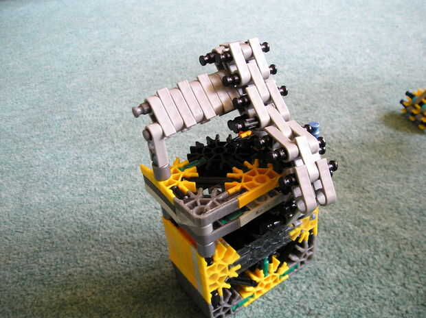 Este es el segundo de una serie de 3 ascensores nuevos en nuestra máquina de la bola de k'nex imposible.Esta elevación es bastante pequeña, lo que es útil para espacios pequeños donde tienes que hacer que la bola suba un poco. Ahora, sé que puedes es