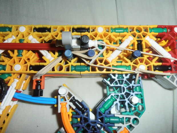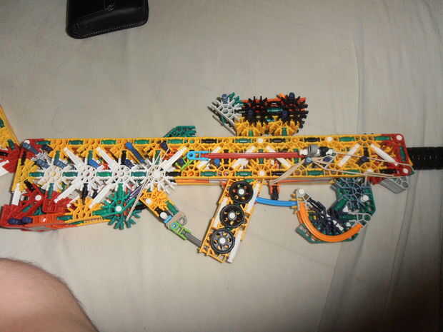 Créditos: KnexBuild.Tira 25 pies con dos bandas.La revista tiene 6 balas.Compartimiento extraíble.KnexBuild mecanismo de pasador de la barra.Gatillo de verdad reforzado.Trabajo diseño de cachorro de bull.Muy grande.Listo el carril.