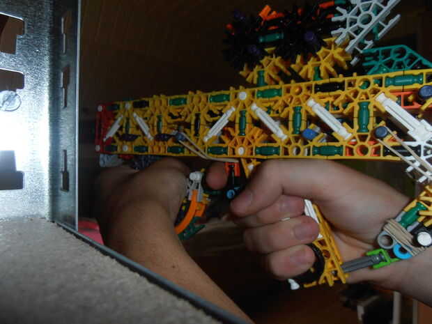 Este es el segundo de una serie de 3 ascensores nuevos en nuestra máquina de la bola de k'nex imposible.Esta elevación es bastante pequeña, lo que es útil para espacios pequeños donde tienes que hacer que la bola suba un poco. Ahora, sé que puedes es
