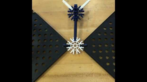 Esta parte requiere dos placas negro triangulares, dos barras blancas, una barra azul, dos piezas conjuntos azul y una blanco pieza conjunta. Instale como se muestra.