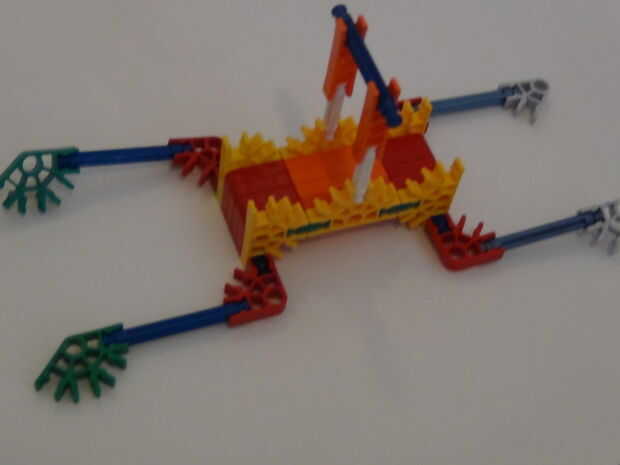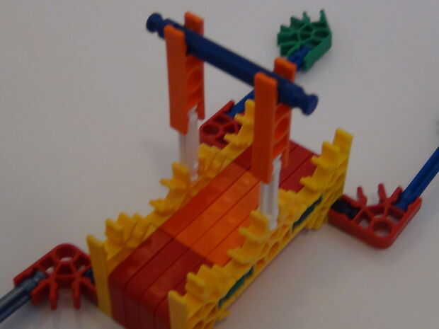 Hi i made this k'nex bulldozer , which has steering and a digging scoop. También tiene unas escaleras ubicadas en la parte trasera del vehículo. El manejo posterior es una gran idea porque ayuda a la topadora manejar mejor que un coche alrededor de l