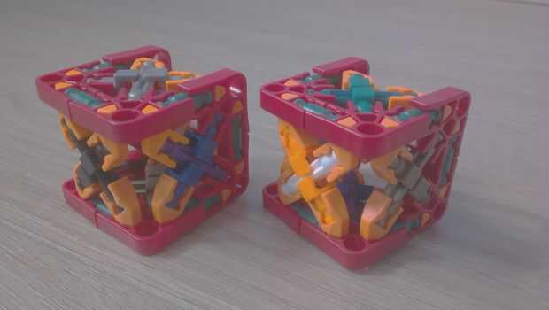 aunque su tamaño es enorme en comparación con un dado normal, esta es la versión más pequeña posible de K'nex de tamaño normal.