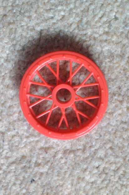 NO USE LA RUEDA ROJA QUE PUEDE SER POR SEPARADO COMPRADO, YA QUE TIENE PUNTOS SOBRESALE QUE IMPIDE GIRAR ALREDEDOR.