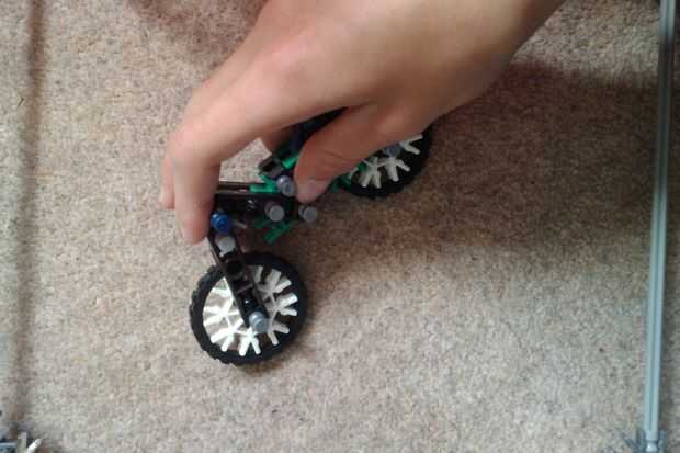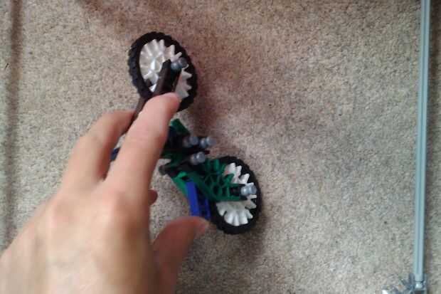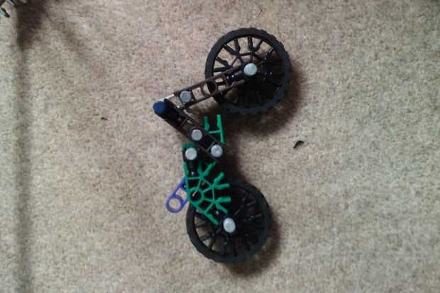 Esta moto (y el trike) tienen ruedas personalizables; las ruedas pueden ser un conector de copo de nieve (que viene en blanco, negro y otros), o las ruedas de bolsa que son de color gris y tiene el orificio principal y dos independientes que un conector tan ranuras en.