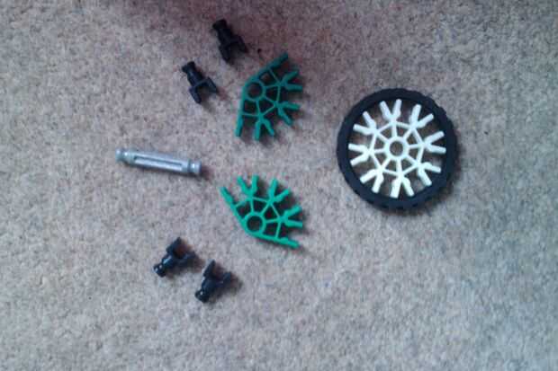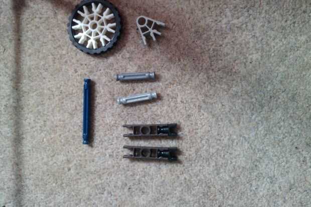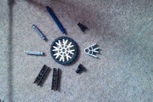 aunque su tamaño es enorme en comparación con un dado normal, esta es la versión más pequeña posible de K'nex de tamaño normal.¿usted quiere hacer esto?bueno, empecemos!Paso 1: reunir piezas Como se puede ver en la imagen, esto es lo que necesita par